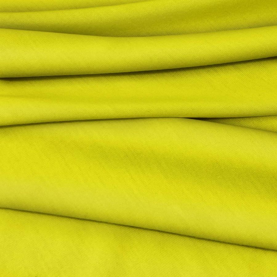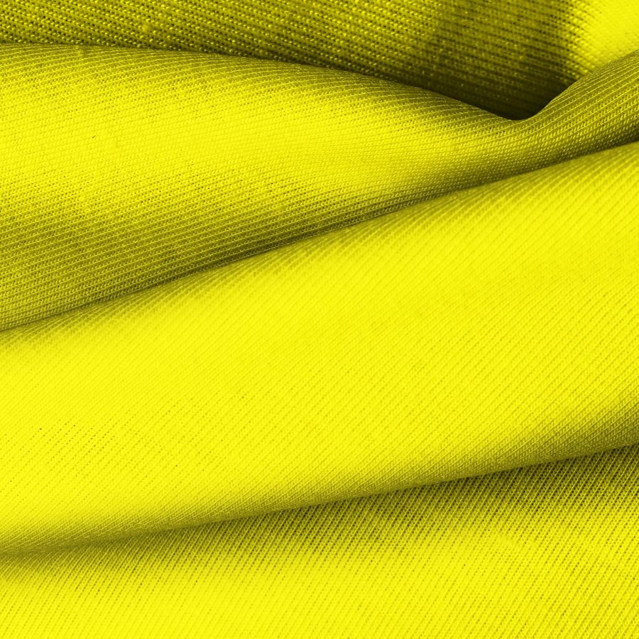 La tela base de la Punto Camiseta - Vanity en color liso impreso de Amarillo Cadmio, con un CMYK de 8 0 88 0, es suave y elástica, ideal para prendas de punto. Combina especialmente bien con tonos neutros como gris o blanco.