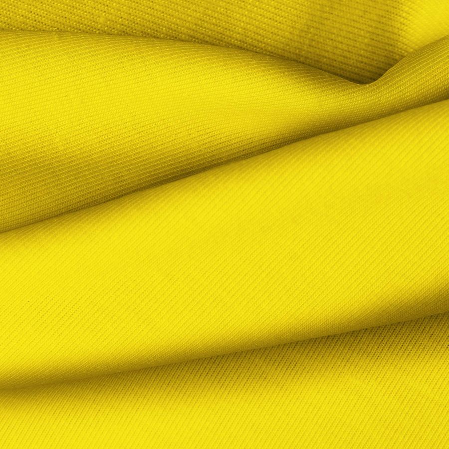 La tela base de esta prenda es Punto Camiseta - Vanity, de composición 95% poliéster y 5% elastómero. El color impreso es Amarillo Cromo, con un CMYK de 0 21 91 0. Este color representa la energía y la creatividad, se combina perfectamente con tonos neutros como blanco, negro y gris.