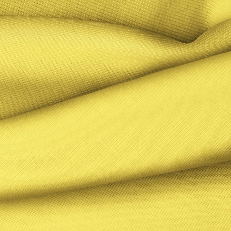 La tela base utilizada es la Punto Camiseta - Vanity, de composición 95% poliéster y 5% elastómero, con un gramaje de 185 gr/m2 y un ancho de 160 cm. El color liso impreso es un Amarillo Alarma, con una combinación de tintas CMYK de 0 16 77 0. Este color simboliza la energía, la creatividad y la felicidad, y combina especialmente bien con tonos neutros como el blanco, negro y gris.