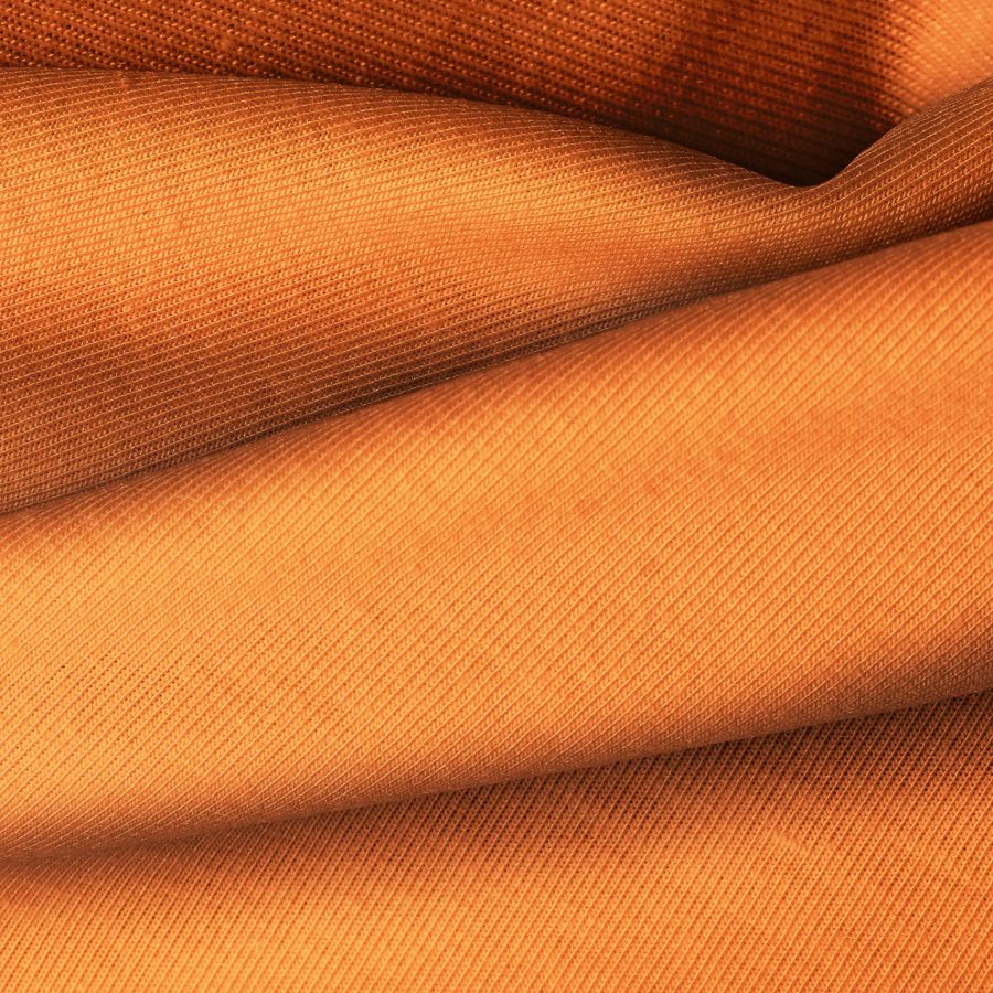 La tela base, Punto Camiseta - Vanity, impresa en color liso Amarillo Indio con un CMYK de 0 65 82 0, es suave y elástica. El color primario es un amarillo intenso con tonos anaranjados que evocan la calidez del sol al atardecer. Combina perfectamente con tonos tierra como marrones y verdes oliva.
