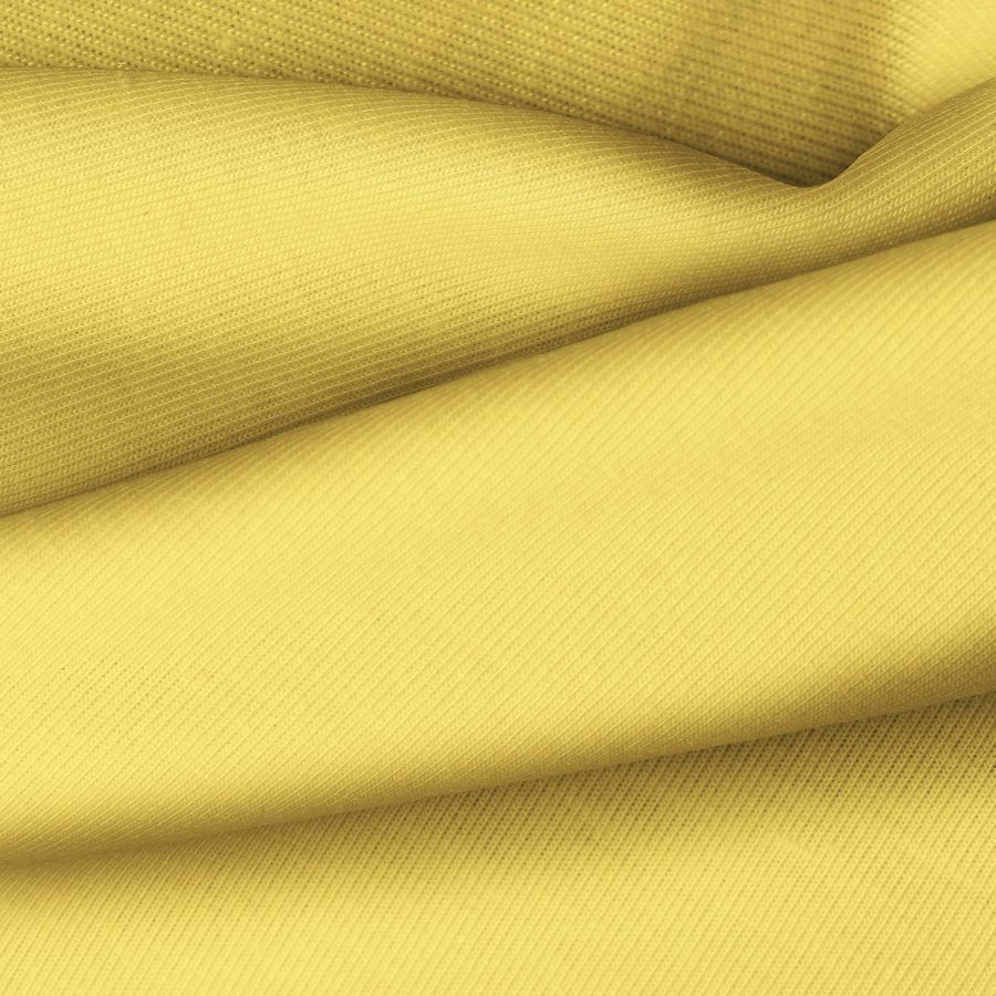 La tela base es una Punto Camiseta - Vanity de poliéster y elastómero, con un color liso impreso en tonalidades de amarillo llama (CMYK: 0 21 74 0). Este color secundario simboliza la energía, la creatividad y la vitalidad. Combina especialmente bien con tonos neutros como blanco, gris y negro.