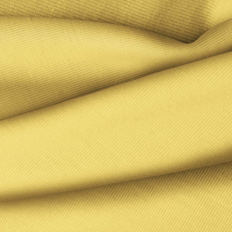 La tela base, Punto Camiseta - Vanity, es de un color liso amarillo mimosa, con un CMYK de 6 26 72 0. Este color simboliza la alegría y la luminosidad, ideal para prendas de moda y deportivas. Combina muy bien con tonos neutros como gris, blanco y negro.