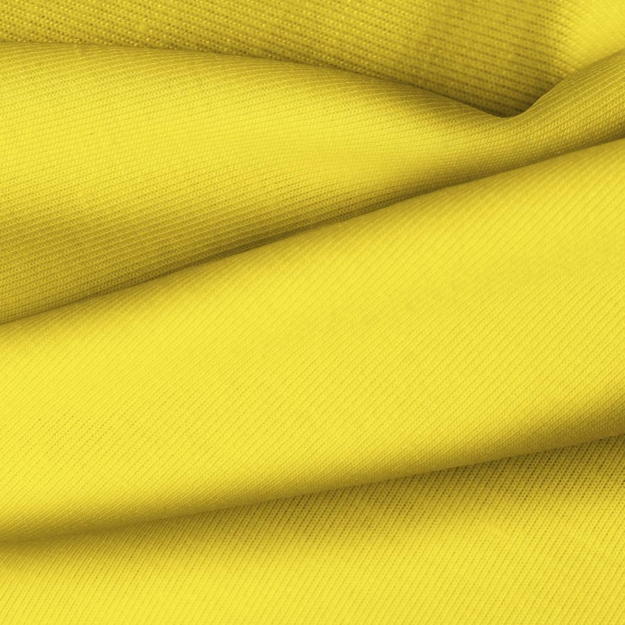 La tela base de esta tela es de Punto Camiseta - Vanity, con una composición de 95% POLIÉSTER y 5% ELASTÓMERO. El color liso impreso es Amarillo Postal, con un CMYK de 1 17 85 0. Este color representa la calidez y la alegría del sol, combinando muy bien con tonos neutros como el blanco, el negro y el gris.
