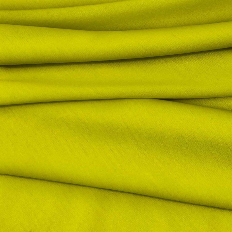 La tela base de esta descripción es el Punto Camiseta - Vanity, con un color liso impreso en tonalidades de amarillo verdoso, reflejado en un CMYK de 20 4 96 0. Este color secundario simboliza vitalidad, frescura y naturaleza. Se combina especialmente bien con tonos neutros como blanco, gris o negro, resaltando su luminosidad y modernidad.