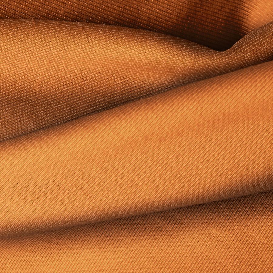 La tela base de la Punto Camiseta - Vanity es una tela de punto compuesta por 95% poliéster y 5% elastómero, con un gramaje de 185 gr/m2. El color liso impreso es Naranja Halloween, con una combinación CMYK de 16 66 89 5. Este color secundario evoca un tono vibrante y cálido, ideal para prendas de moda y deportivas. Combina especialmente bien con colores neutros como blanco, negro y gris.