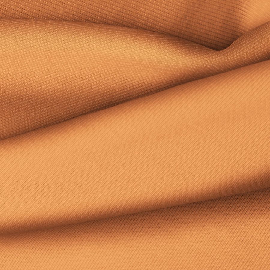 La tela base, Punto Camiseta - Vanity, es un tejido de punto compuesto por un 95% de poliéster y un 5% de elastómero, con un gramaje de 185 gr/m² y un ancho de 160 cm. El color liso impreso es Naranja Melón, con una combinación de tintas de Cyan: 7, Magenta: 62, Yellow: 76, Black: 1, lo que resulta en un CMYK de 7 62 76 1. Este color secundario simboliza la mezcla entre el optimismo y la creatividad (naranja) y la dulzura y frescura (melón).