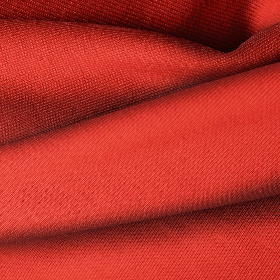 La tela base de Punto Camiseta - Vanity es de composición 95% POLIÉSTER, 5% ELASTÓMERO, con un gramaje de 185 gr/m2 y un ancho de 160 cm. Su color liso impreso es Rojo Bermejo, con una combinación de tintas Cyan: 11, Magenta: 93, Yellow: 93 y Black: 2 en un tono CMYK de 11 93 93 2. Este color vibrante resalta por su intensidad y calidez, combinando perfectamente con tonos neutros como blanco, negro y gris, así como con tonos tierra como beige y marrón.