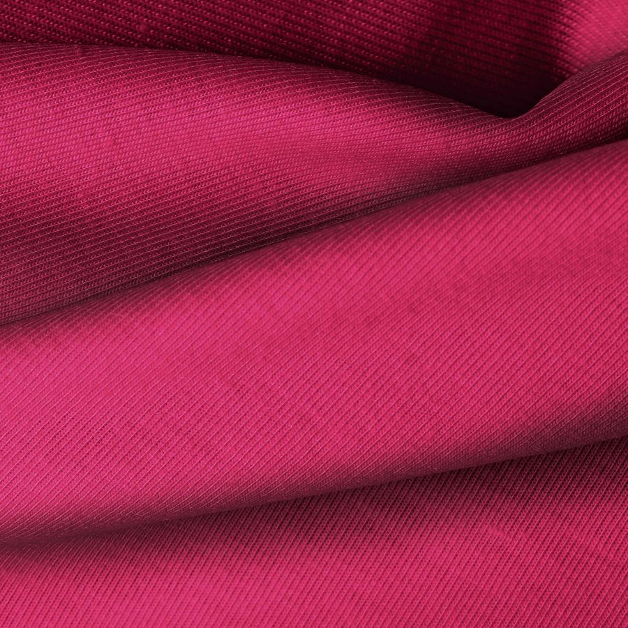 La tela base de esta descripción es la Punto Camiseta - Vanity, de Punto con una composición de 95% poliéster y 5% elastómero. El color liso impreso en esta tela es Rojo Granate, con un CMYK de 23 98 52 17. Este color se caracteriza por ser intenso, cálido y con matices de granate que le otorgan profundidad. Combina especialmente bien con colores neutros como blancos, negros y grises, así como con tonos metálicos como el oro o la plata.