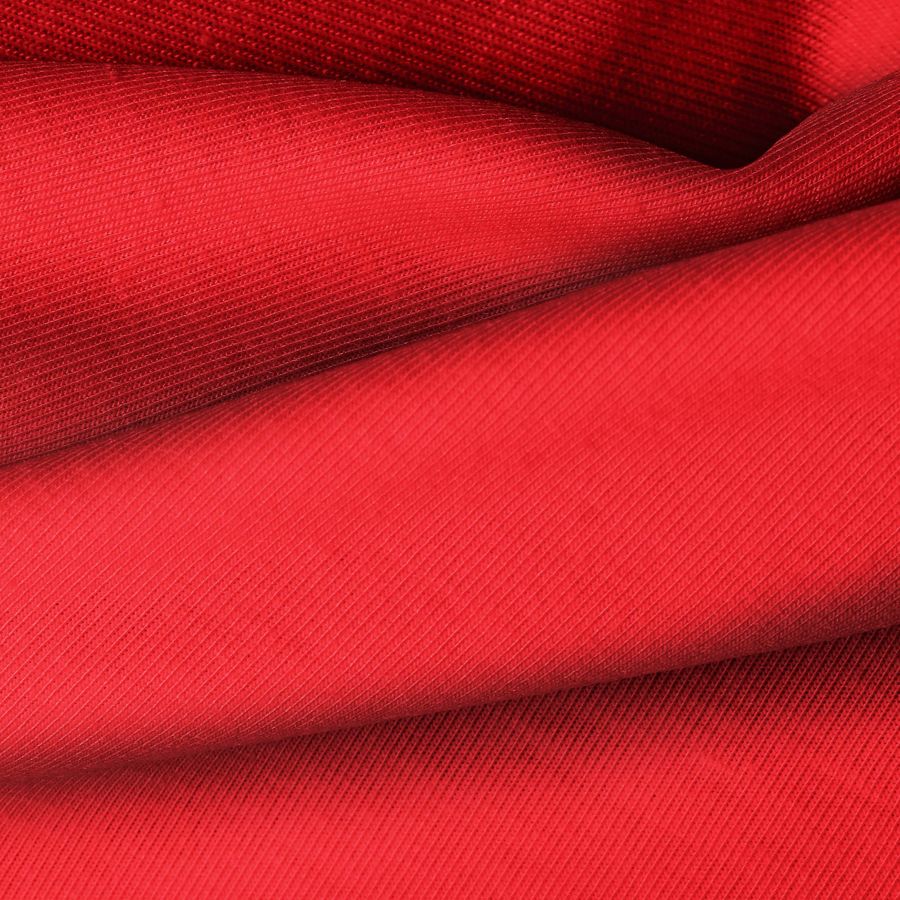 La tela base de este producto es Punto Camiseta, con una composición de 95% POLIÉSTER y 5% ELASTÓMERO, de color liso Rojo Pigmento con un CMYK de 0 95 85 0. Este color es vibrante, cálido y cautivador, que se combina perfectamente con tonos neutros como blanco, negro y gris, así como con colores complementarios como verde y naranja.