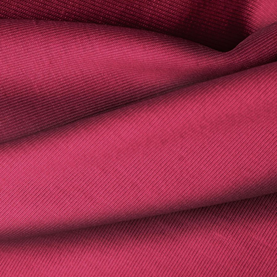 La tela base, Punto Camiseta - Vanity, es de color Rojo Ruby big dip, con un contenido de CMYK de 26 95 55 24. Este color profundo y vibrante combina tonos de rojo intenso y púrpura, creando una sensación de elegancia y sofisticación. Se puede combinar perfectamente con colores neutros como blanco, negro y gris, resaltando su intensidad y brillo.