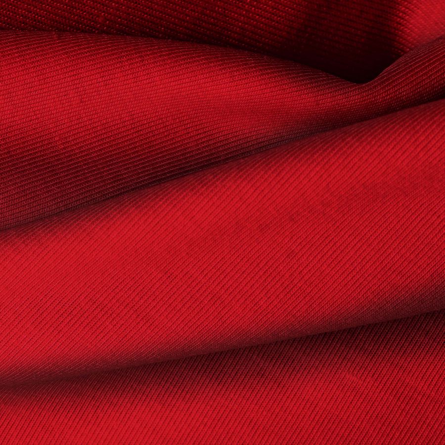La tela base es de punto camiseta Vanity, de composición 95% poliéster y 5% elastómero, con un gramaje de 185 gr/m2 y un ancho de 160 cm. El color liso impreso es Rojo Sangría, con un CMYK de 26 100 100 30. Este cálido color simboliza la pasión y la energía, combinando a la perfección con tonos neutros como el blanco y el negro, así como con colores tierra como el marrón y el beige.