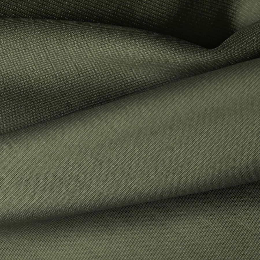 La tela base, Punto Camiseta - Vanity, es de punto con una composición de 95% poliéster y 5% elastómero. Su color liso impreso es Verde Oliva, con un CMYK de 66 50 73 55. Este color natural evoca la naturaleza y la calma, combinando tonos de verde y amarillo. Es un color versátil que se puede combinar con colores neutros como blanco, negro o gris, así como con tonos tierra y azules para crear looks equilibrados y modernos.