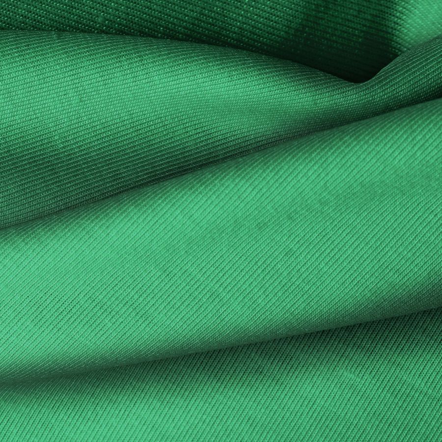 La tela base es una Punto Camiseta - Vanity de color verde mar, con una composición de 95% POLIÉSTER y 5% ELASTÓMERO, reflejando un CMYK de 80 22 78 6. Este color secundario evoca la naturaleza y la calma, combina perfectamente con tonos neutros como blanco y beige, así como con tonos tierra como marrón y terracota.
