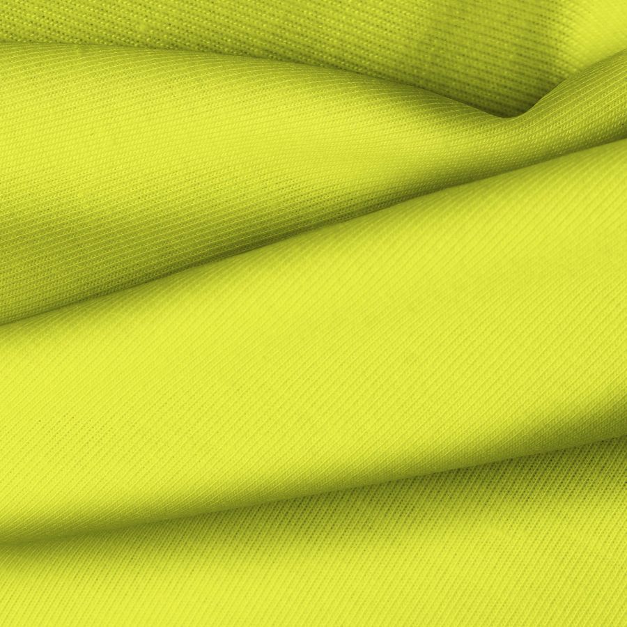 La tela base es Punto Camiseta - Vanity en color Verde Pera, con un CMYK de 27 0 85 0. Este color simboliza la frescura y vitalidad de la naturaleza, combinando perfectamente con tonos neutros como blanco, gris y negro.