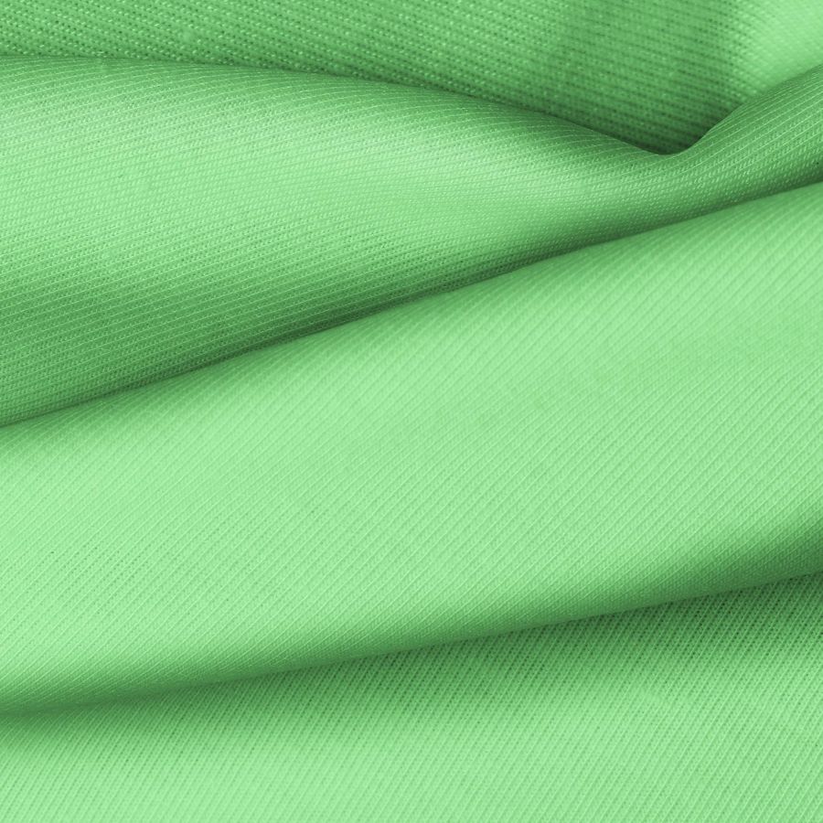 La tela base de la Punto Camiseta - Vanity es una tela de punto compuesta por 95% POLIÉSTER y 5% ELASTÓMERO, con un gramaje de 185 gr/m2 y un ancho de 160 cm. El color impreso es un verde cloro, con un CMYK de 55 0 68 0. Este color simboliza frescura y naturaleza, combinando muy bien con tonos neutros como el blanco y el gris, así como con tonos más intensos como el azul marino o el negro.