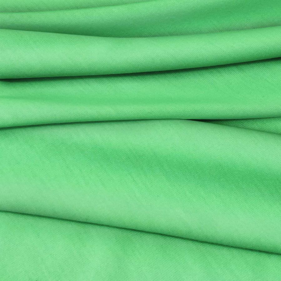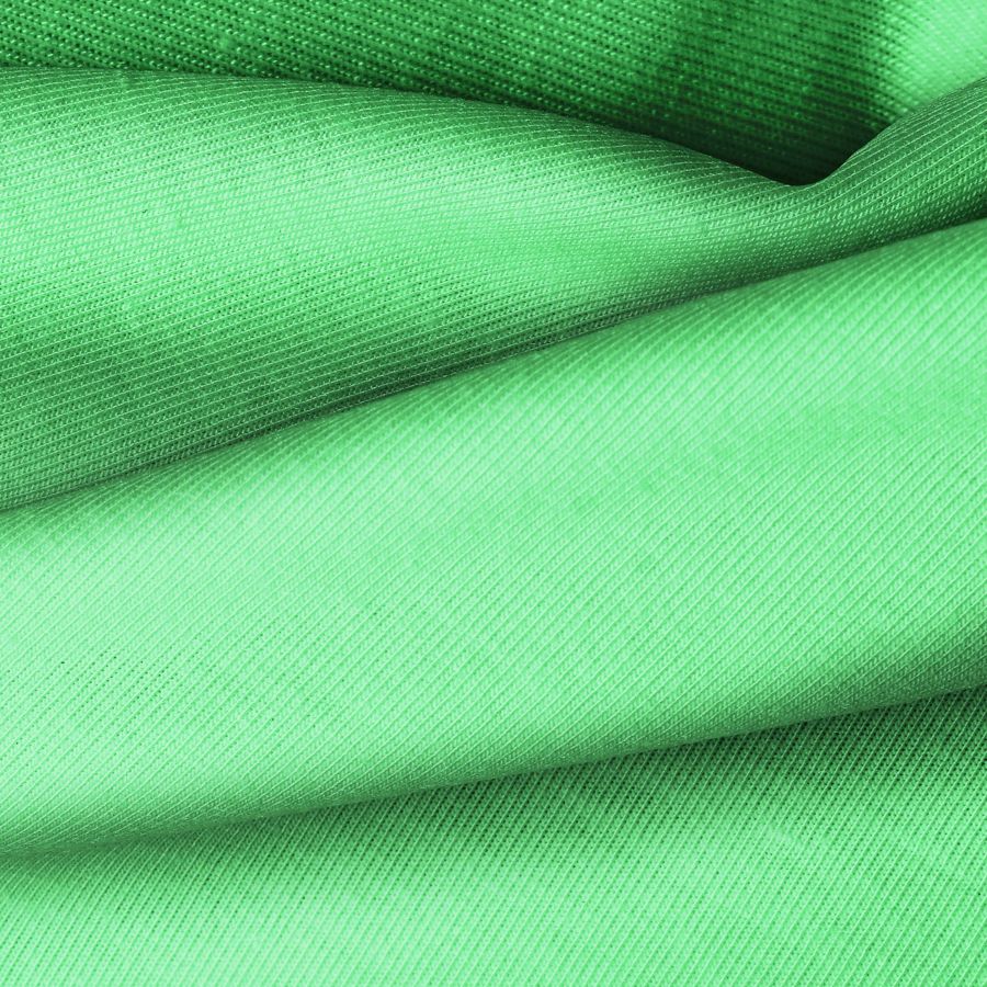 La tela base es Punto Camiseta - Vanity, de composición 95% POLIÉSTER y 5% ELASTÓMERO, con un gramaje de 185 gr/m2 y un ancho de 160 cm. El color liso impreso es Verde Heliógeno, con un CMYK de 52 0 67 0. Este color se caracteriza por ser vibrante y llamativo, ideal para prendas de moda que buscan destacar. Combina muy bien con tonos neutros como el blanco, negro o gris, así como con colores pastel como el rosa o el azul.