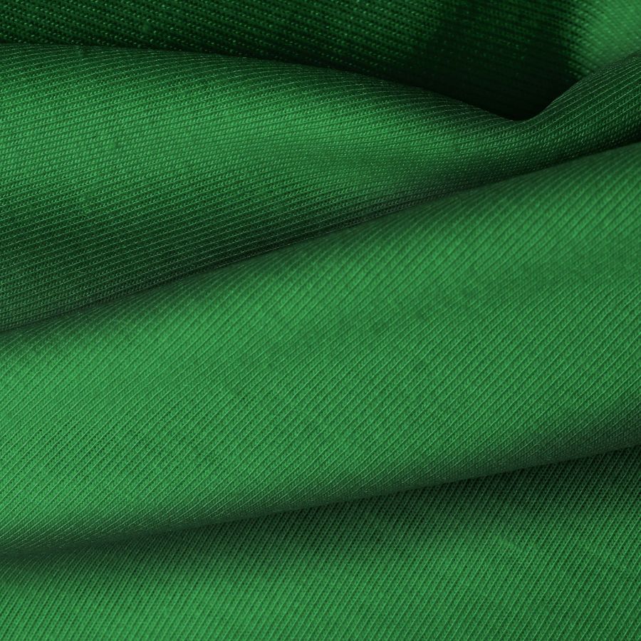 La tela base de la Punto Camiseta - Vanity es una tela de punto compuesta por 95% POLIÉSTER y 5% ELASTÓMERO, con un gramaje de 185 gr/m2 y un ancho de 160 cm. El color liso impreso en esta tela es Verde Hierba, con un CMYK de 88 37 100 34. Este color simboliza la frescura y vitalidad de la naturaleza, combinando armoniosamente con tonos neutros como blanco y gris, así como con tonos tierra como marrón y beige.