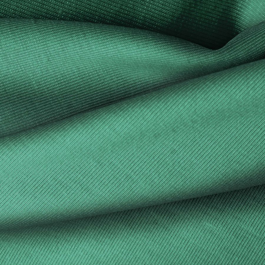 La tela base utilizada es Punto Camiseta - Vanity con un color liso impreso en Verde Hooker, reflejando un CMYK de 77 31 64 18. Este color secundario simboliza la naturaleza y la frescura, con una combinación ideal de verde hierba y amarillo limón, ideal para transmitir vitalidad y energía. Se combina perfectamente con tonos neutros como blanco o gris para resaltar su intensidad.