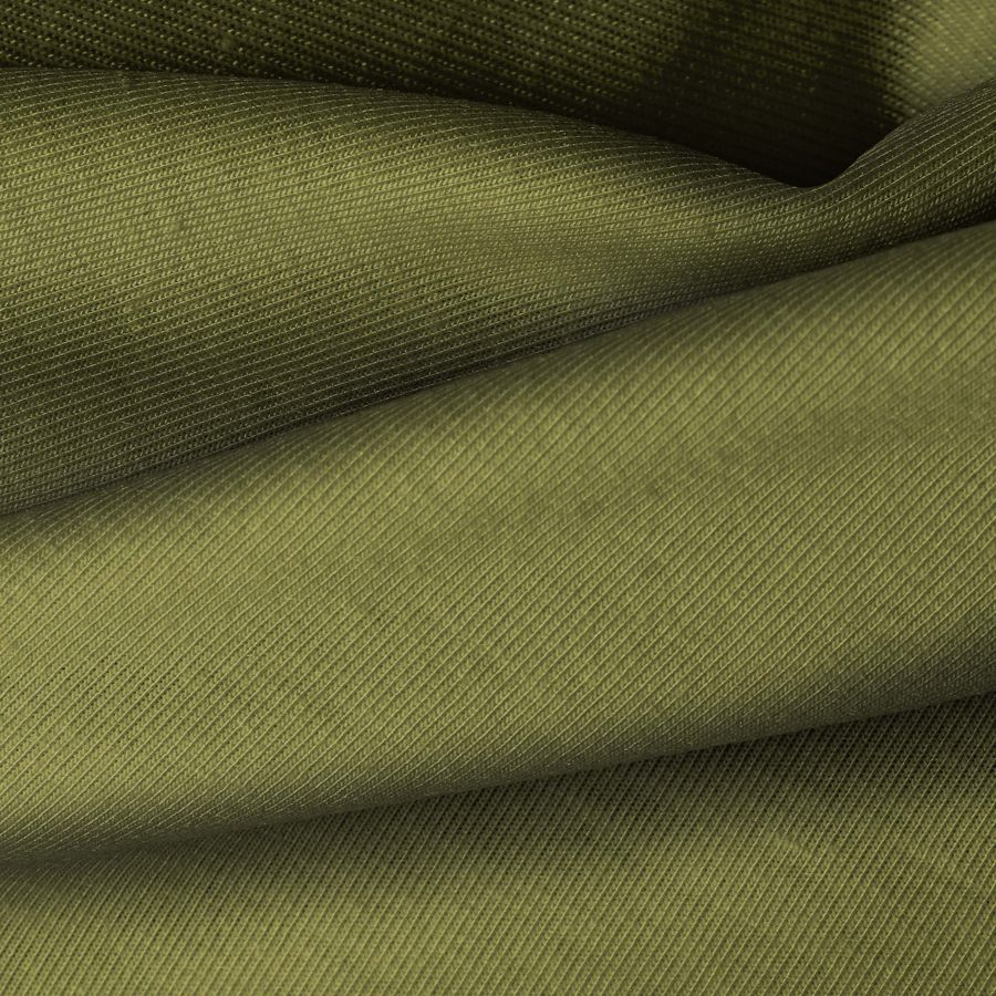 La tela base, Punto Camiseta - Vanity, es de composición 95% poliéster y 5% elastómero, con un gramaje de 185 gr/m2 y un ancho de 160 cm. El color liso impreso es Verde Jungla, con un CMYK de 59 46 88 43. Este tono representa la frescura y la naturaleza, con una mezcla equilibrada de azules y amarillos que evocan la exuberancia de la jungla. Combina especialmente bien con tonos neutros como blanco o gris para resaltar su vibrante colorido.