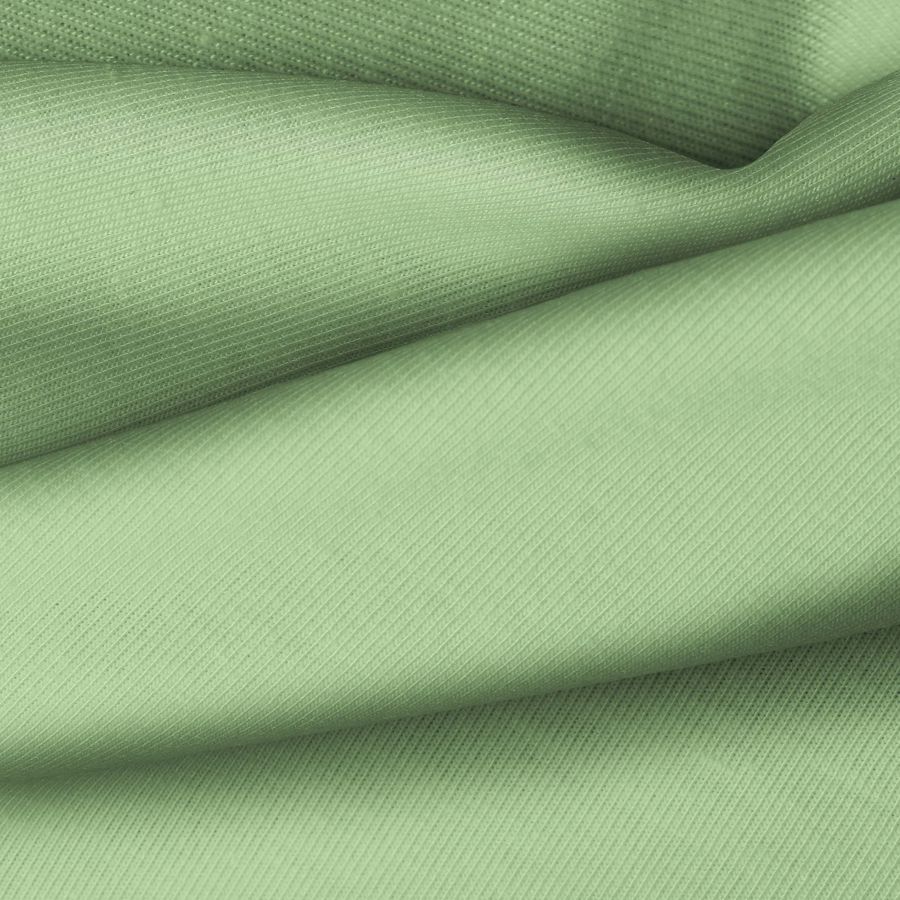 La tela base, Punto Camiseta - Vanity, posee un color liso impreso en tono Verde Pálido con un CMYK de 53 17 63 2. Este color simboliza frescura y tranquilidad, combinando fácilmente con tonos neutros como blanco, gris y beige.