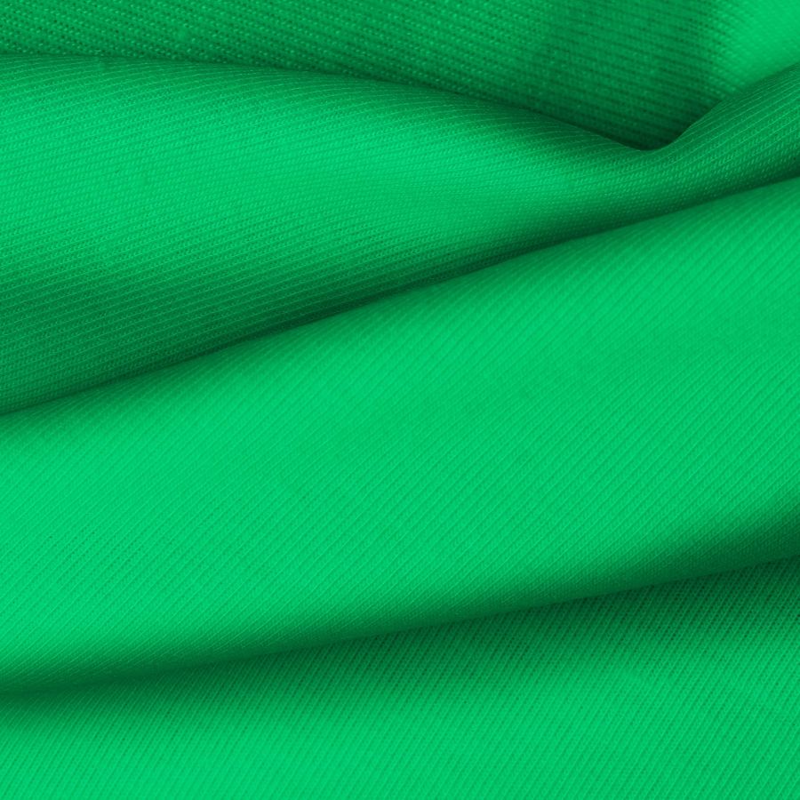 La tela base es una Punto Camiseta - Vanity de color verde menta oscura, con un CMYK de 80 2 87 0. El color secundario es vibrante y refrescante, combinando especialmente bien con tonos neutros como el blanco o el gris.