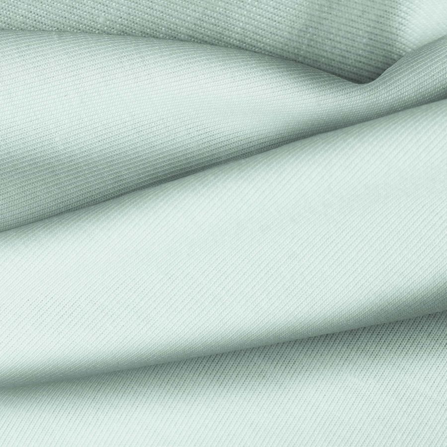 La tela base del tejido es Punto Camiseta - Vanity, de composición 95% poliéster y 5% elastómero. El color impreso es Verde pipermint, con un CMYK de 27 0 20 0. Este tono verde suave simboliza frescura y naturalidad, combinando especialmente bien con colores neutros como blanco, gris y negro. El tejido está impreso con este color liso a una sola cara por impresión digital textil.