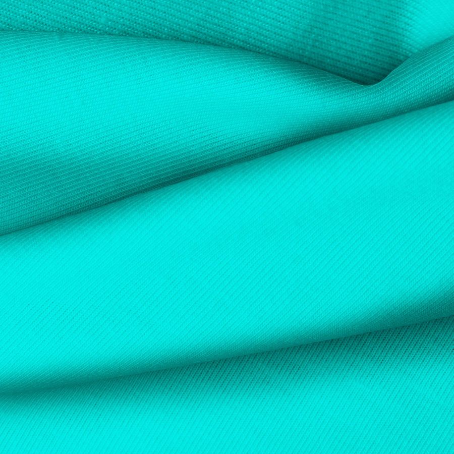 La tela base de este tejido es Punto Camiseta - Vanity, compuesta por 95% de poliéster y 5% de elastómero, con un gramaje de 185 gr/m2. El color liso impreso es Verde Espuma de mar, con un CMYK de 65 0 31 0. Este color evoca frescura, naturalidad y tranquilidad, combinando perfectamente con tonos neutros como grises y blancos, así como con tonos tierra como beige o marrón.