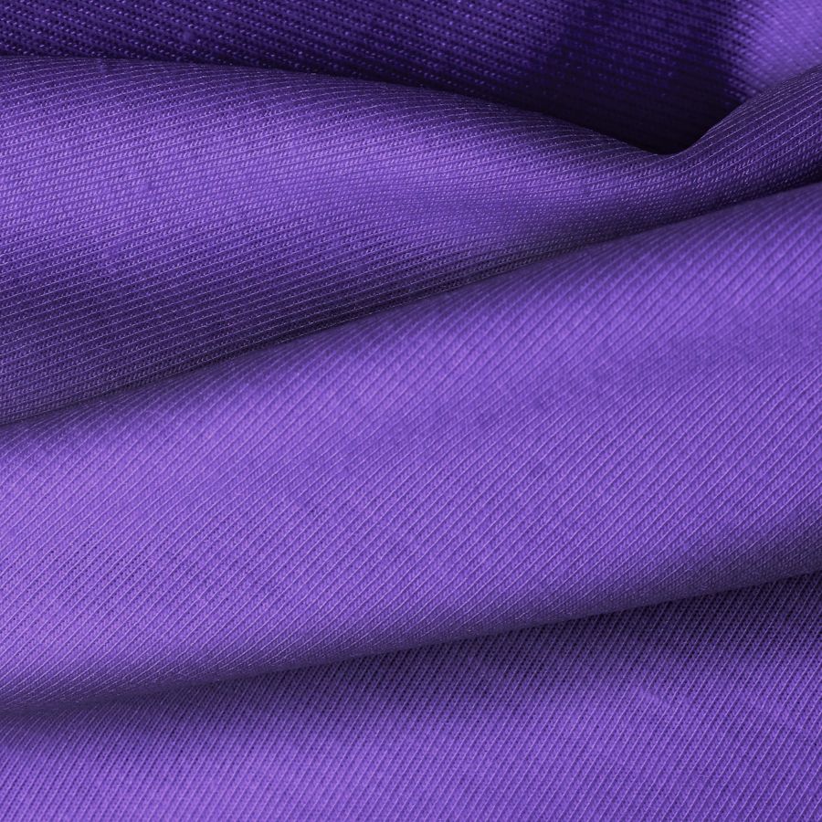 La tela base de este tejido es la Punto Camiseta - Vanity, de composición 95% poliéster y 5% elastómero, con un gramaje de 185 gr/m2 y un ancho de 160 cm. El color liso impreso es Morado, Corazón Púrpura, con una combinación de tintas CMYK 77 82 0 0. Este color morado es un tono cálido y femenino, que evoca sensaciones de romanticismo y elegancia. Combina especialmente bien con colores como el rosa, el blanco y el gris.