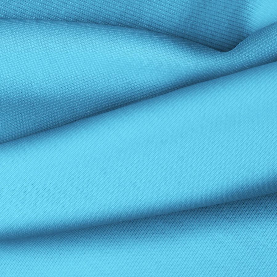 La tela base de la Punto Camiseta - Vanity es una tela de punto suave y elástica, con una composición de 95% Poliéster y 5% Elastómero, en color Azul Bebé con un CMYK de 64 15 0 0. Este color es sutil y delicado, ideal para prendas de moda femenina y lencería. Combina especialmente bien con tonos neutros como blanco, gris y nude.
