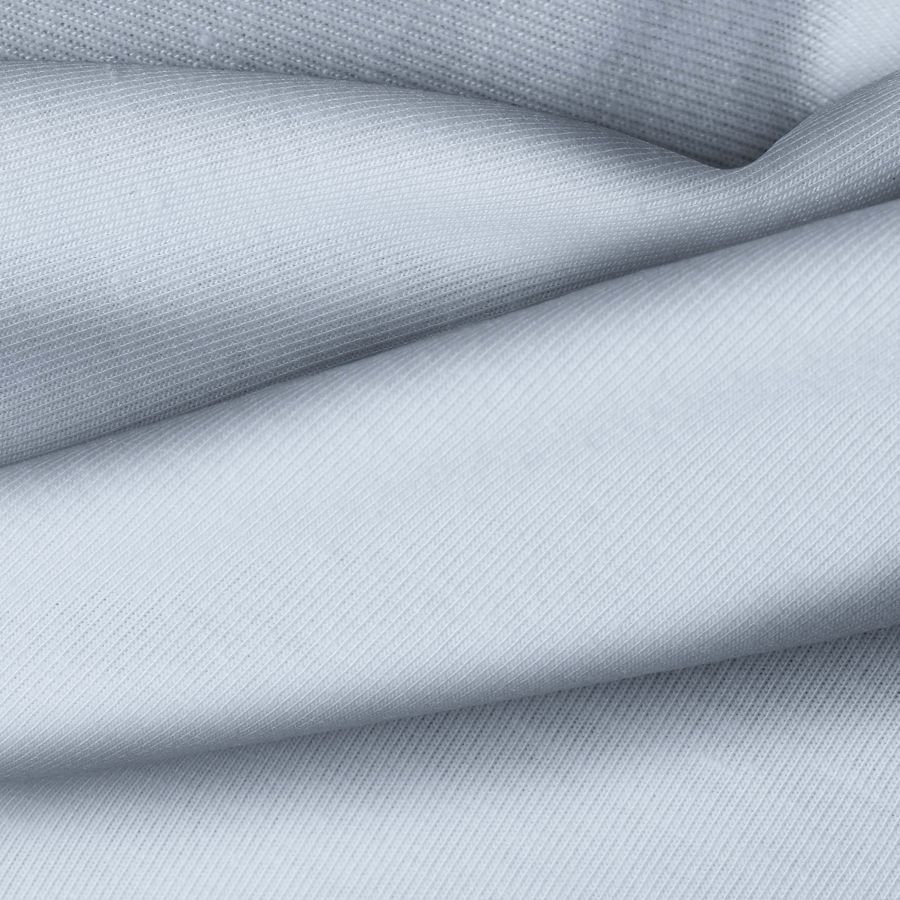 La tela base, llamada Punto Camiseta - Vanity, es de color azul China, con un CMYK de 37 19 11 0. Este color en particular transmite calma, confianza y frescura. Combina perfectamente con tonos neutros como el blanco o el gris, así como con tonos más brillantes como el amarillo o el naranja, creando una paleta de colores equilibrada y armoniosa.