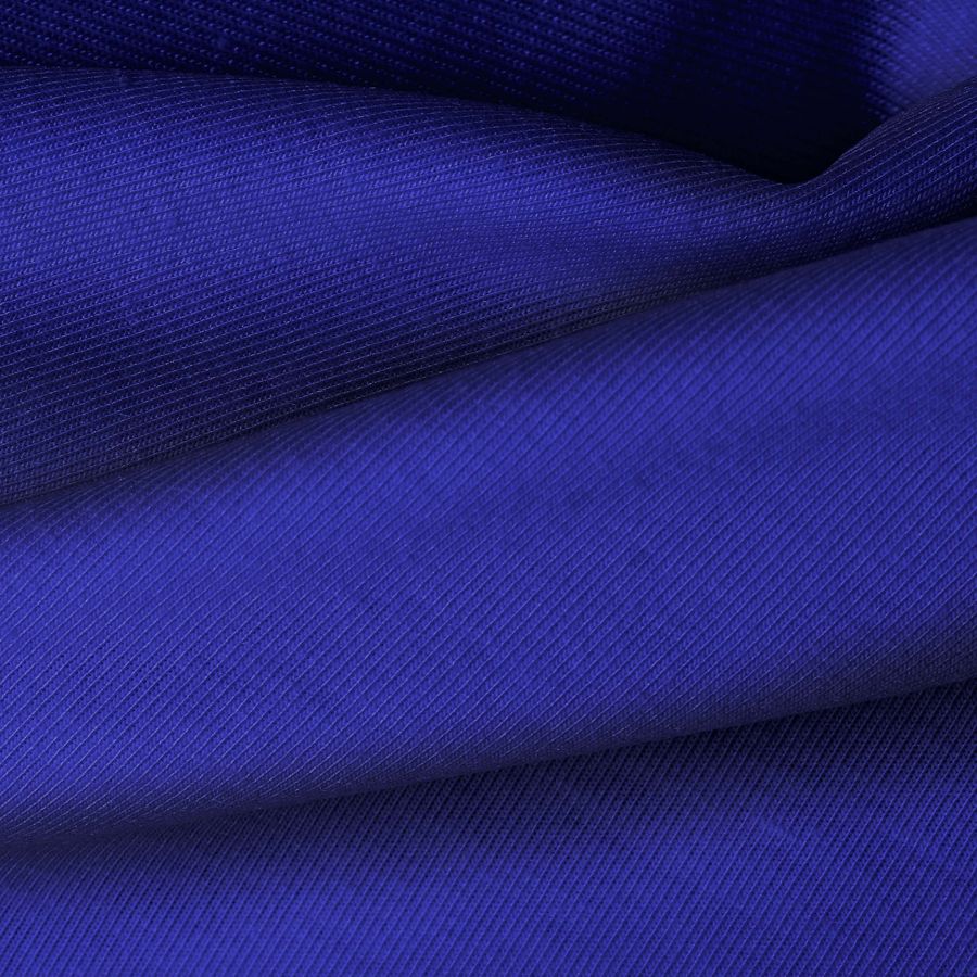 La tela base es un punto camiseta de Vanity en color azul medianoche, con un CMYK de 100 95 29 14. Este color simboliza la calma y la serenidad. Combina perfectamente con tonos neutros como el blanco, gris y negro, así como con tonalidades más vibrantes como el amarillo o el verde.