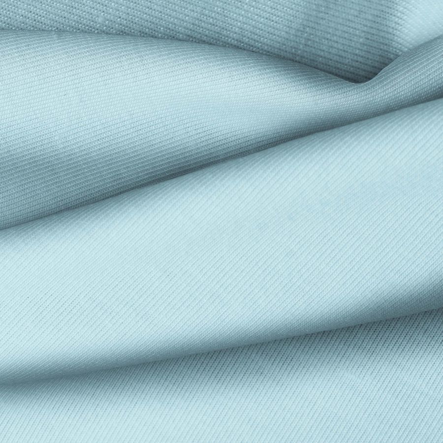 La tela base de esta descripción es el Punto Camiseta - Vanity en color Azul Hielo, con una composición de 95% poliéster y 5% elastómero, destacando un CMYK de 42 5 13 0. Este color simboliza la frescura y la serenidad, ideal para prendas casual y deportivas. Combina bien con tonos neutros como blanco, gris y negro.