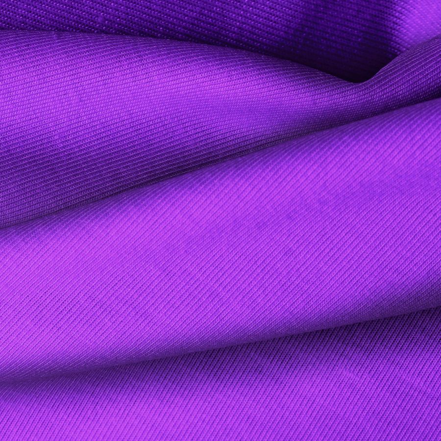 La tela base de esta prenda es Punto Camiseta - Vanity, en un color liso impreso de tonalidades Azul y Violeta. El color se compone de 74% de tinta Cyan y 81% de tinta Magenta, con un CMYK de 74 81 0 0. Este tono secundario combina perfectamente con colores neutros como el blanco, negro y gris, así como tonos complementarios como el amarillo y el naranja.