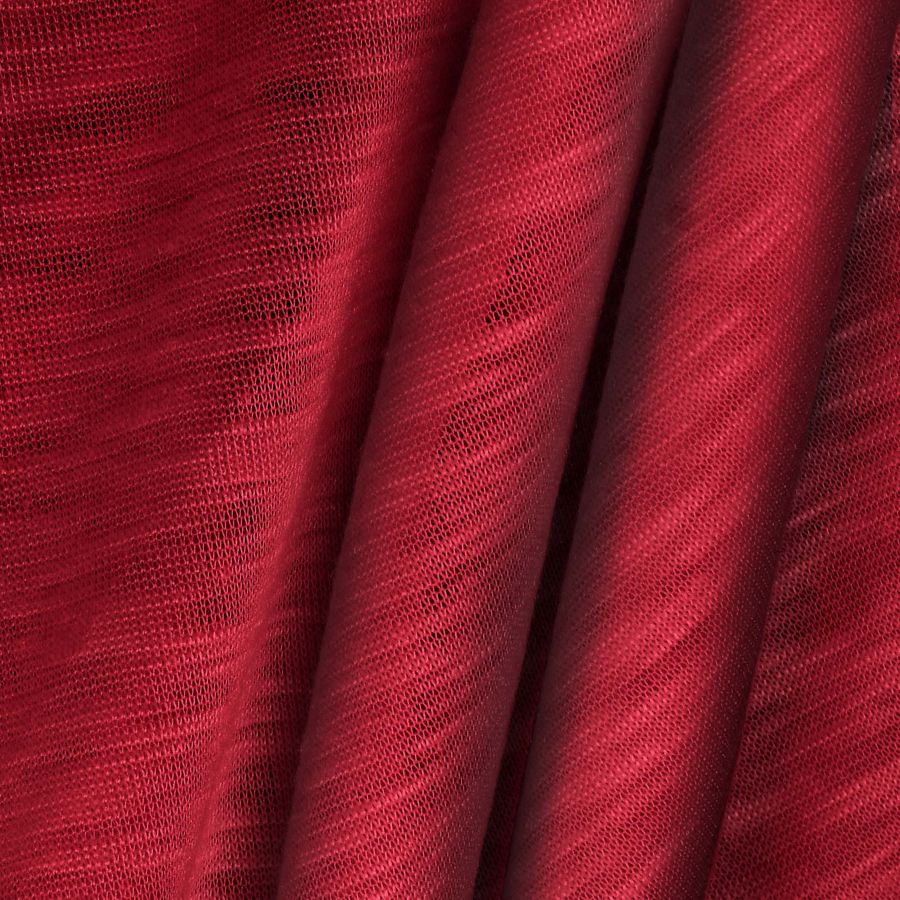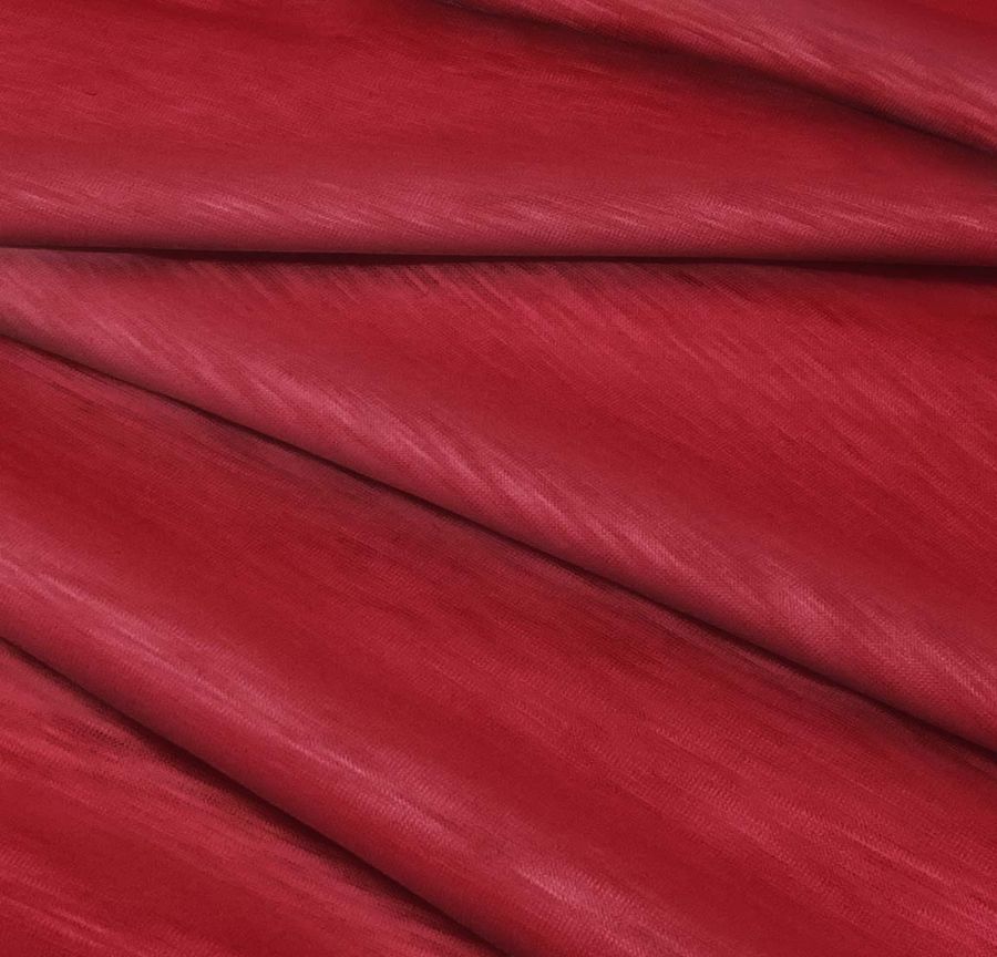 La tela base de este tejido es el Punto Camiseta Jaspeado, de tela de punto y 100% poliéster, con un gramaje de 135 gr/m2 y una anchura de 160 cm. El color liso impreso es un rojo auburn, con una combinación de tintas de cian, magenta, amarillo y negro, cuyos valores CMYK son 27 98 75 29. Este color simboliza la pasión, la energía y la fuerza interior. Combinado con tonos neutros, como el gris y el negro, crea un contraste audaz y moderno.