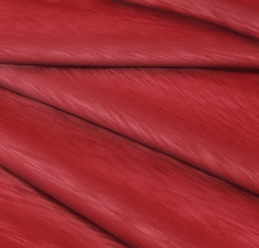 La tela base, Punto Camiseta Jaspeado - Dubái, es una tela de punto compuesta al 100% de poliéster con un gramaje de 135 gr/m2 y un ancho de 160 cm. El color liso impreso en esta tela es rojo bermellón, con un CMYK de 25 94 75 21. El color rojo es un color cálido y emocionalmente intenso que simboliza la pasión y la energía. En combinación con otros colores, puede crear contrastes dramáticos y vívidos. El rojo bermellón en particular se combina bien con tonos oscuros como el negro o el azul marino, así como con tonos neutros como el gris o el blanco.