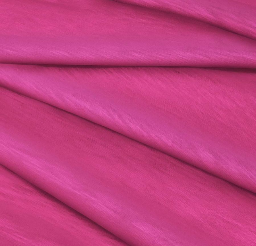 La tela base está impresa con el color liso a una sola cara por impresión digital textil, lo que significa que el color es aplicado mediante una tecnología de impresión digital específica para tejidos de poliéster. La tela también se caracteriza por ser elástica al tacto y translúcida visualmente, lo que le proporciona una textura única.
