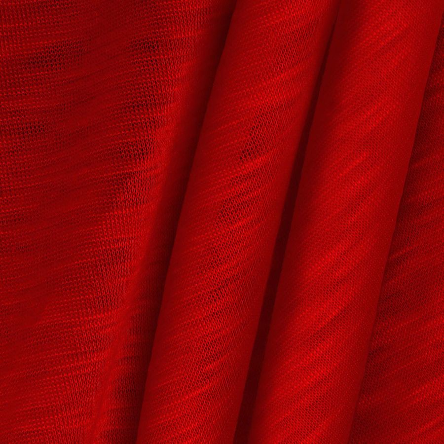 La tela base de este tejido es el Punto Camiseta Jaspeado - Dubái, de composición 100% poliéster, con un gramaje de 135 gr/m2 y un ancho de 160 cm. El color liso impreso es rojo pigmento con un CMYK de 3 100 100 1. El color secundario es un rojo intenso y vibrante con una fuerte presencia del magenta y el amarillo en su composición, lo que lo hace bastante cálido. Combina especialmente bien con tonos oscuros como el negro o el gris para contrastar y con tonos neutros como el blanco o el beige para una combinación armónica.