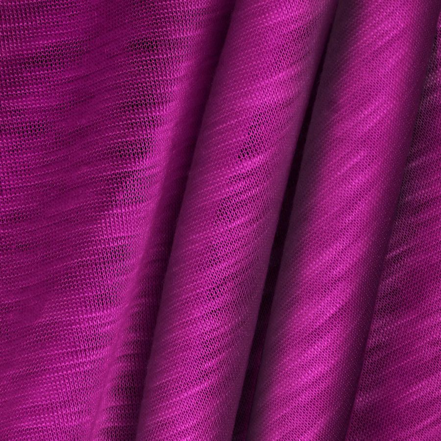 La combinación de rojo y púrpura del color liso impreso evoca la pasión, el romance y el misterio, siendo estos atributos que se pueden emplear en moda femenina o masculina, dependiendo del diseño que se quiera plasmar. Esta combinación se puede complementar con otros colores, dependiendo de la intención que se quiera lograr, como puede ser complementarse con grises, blancos o negros para un look más sofisticado, o con amarillos y naranjas para un aspecto más vivo y colorido.