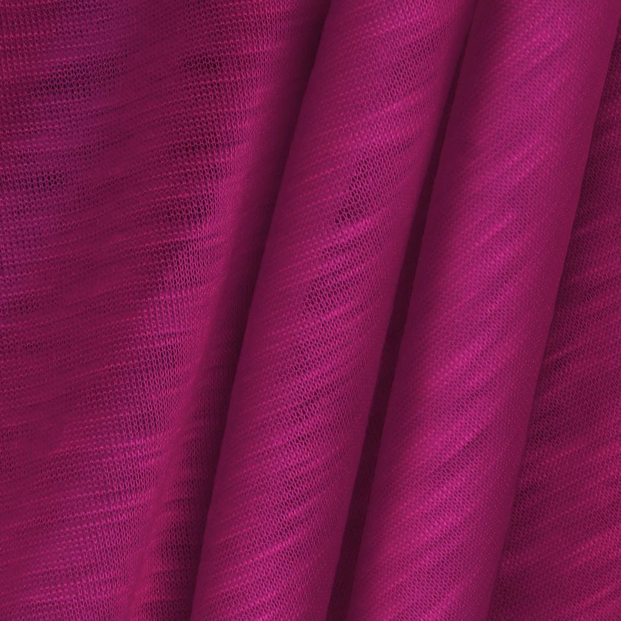 La tela base es la Punto Camiseta Jaspeado - Dubái, una tela de punto de composición 100% poliéster de un gramaje de 135 gr/m2 y un ancho de 160 cm. El color liso impreso es Rojo cereza, con un CMYK de 22 96 22 6. Este color secundario tiene un tono cálido y brillante, que lo hace ideal para prendas elegantes y llamativas. Combina perfectamente con colores como el blanco, el negro y el gris; también puede mezclarse con tonos más vibrantes como el amarillo y el naranja.