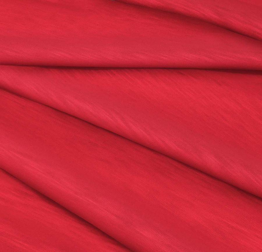 La tela base es la Punto Camiseta Jaspeado - Dubái, una tela de punto de poliéster con un gramaje de 135 gr/m2 y un ancho de 160 cm. El color liso impreso en la tela es Rojo Rubor, que tiene un CMYK de 0 93 74 0, lo que significa que se compone principalmente de magenta y amarillo, lo que le da un color cálido y suave. Además, este color secundario combina especialmente bien con negro, gris y azul oscuro.