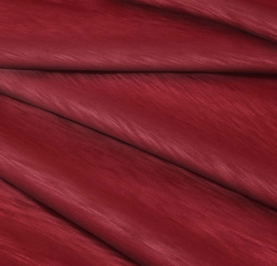 La tela base es Punto Camiseta Jaspeado - Dubái, compuesta por 100% poliéster, con un gramaje de 135 gr/m2 y un ancho de 160 cm. El color liso impreso es rojo borgoña, con un CMYK de 32 99 75 45. Este color se caracteriza por ser un tono oscuro, rico y profundo, que puede generar diferentes emociones en función de la percepción individual. En combinación con otros colores, puede crear un efecto dramático y contrastante con blancos y grisáceos, así como con colores más calidos como amarillos, naranjas y rojos, o más fríos como azules y verdes.