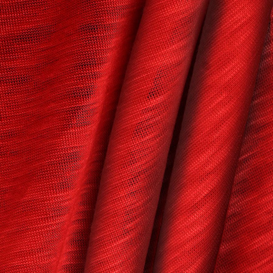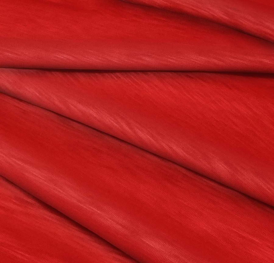 La tela base de este tejido es el Punto Camiseta Jaspeado - Dubái, una tela de punto compuesta al 100% de poliéster con un gramaje de 135 gr/m2 y un ancho de 160 cm. El color liso impreso es un rojo sangre con un CMYK de 18 100 100 8, lo que implica una alta cantidad de magenta y amarillo. Este color secundario se describe como un rojo vivo y pasional, que combina bien con tonos neutros como el blanco y el gris, así como con tonos más intensos como el negro o el azul oscuro.