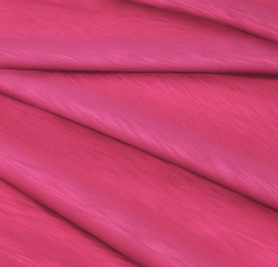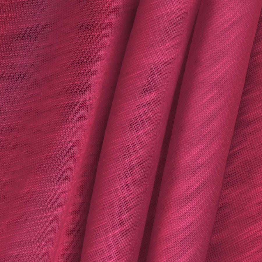 La tela base de esta prenda es el Punto Camiseta Jaspeado - Dubái, una suave y elástica tela de punto compuesta por 100% poliéster, con un gramaje de 135 gr/m2 y un ancho de 160 cm. El color liso impreso en Rojo Borgoña claro tiene una composición de tinta CMYK de 0 85 36 0. Este color secundario tiene cierto aire vintage y se mezcla especialmente bien con tonos marrones, tierras y cremas. Cabe destacar que el tejido está impreso a una sola cara por impresión digital textil.