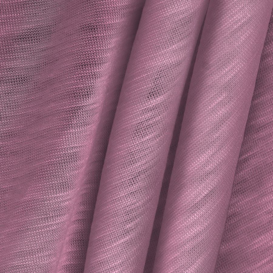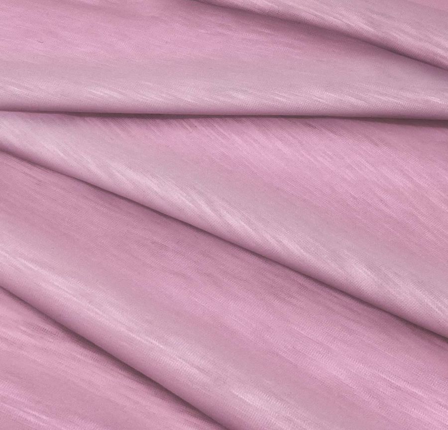El Punto Camiseta Jaspeado - Dubái es una tela de punto compuesta por 100% poliéster, de 135 gr/m2 y con un ancho de 160 cm. El color liso impreso en esta tela es el Rosa Begonia, cuyo CMYK es 6 51 5 0, lo que le confiere un tono suave y delicado. Este color secundario combina perfectamente con otros tonos pasteles, como el azul cielo o el verde menta, creando una armonía muy agradable de la que surgirán prendas elegantes y frescas.