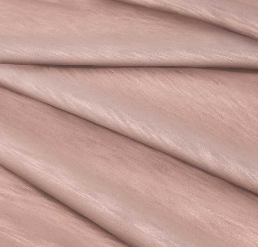 La tela base, Punto Camiseta Jaspeado - Dubái, es una tela de punto compuesta por 100% poliéster, con un gramaje de 135 gr/m2 y un ancho de 160 cm. Su color liso impreso tiene un CMYK de 13 43 35 2, lo que se traduce en una combinación de rosa y camello. Este color secundario transmite calidez, dulzura y sutileza, y combina perfectamente con otros tonos neutros como el gris o el beige, así como con colores más fuertes como el morado o el verde.