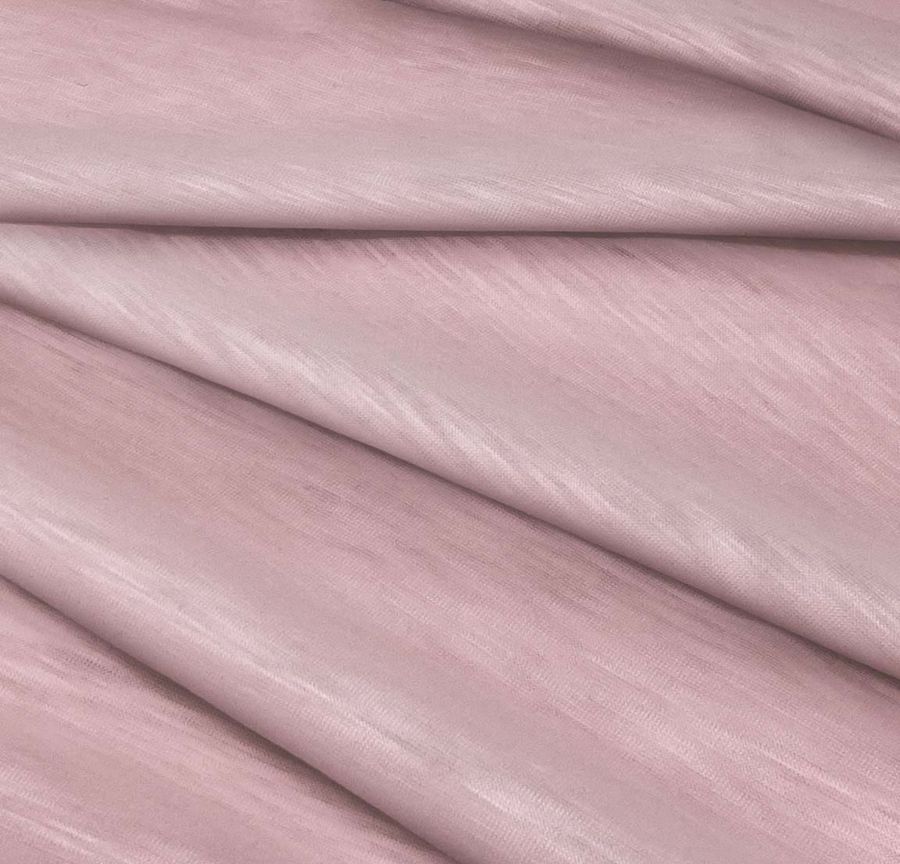 La tela base es el Punto Camiseta Jaspeado - Dubái, una tela de punto compuesta 100% de poliéster con un gramaje de 135 gr/m2 y un ancho de 160 cm. El color liso impreso en esta tela es un rosa colorete con un CMYK de 11, 41, 21, 1. Indicamos que el tejido está impreso con el color liso a una sola cara por impresión digital textil.
