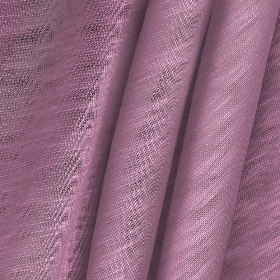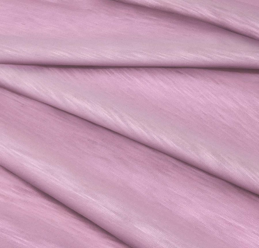 La tela base tiene una textura suave al tacto y lisa a la vista, pero con destellos jaspeados que le dan un toque de originalidad. Además, es elástica y translúcida, lo que la hace ideal para prendas de punto como camisetas o sudaderas. Este tejido se imprime con el color liso a una sola cara por impresión digital textil, lo que significa que el color no penetra la fibra sino que se adhiere a la superficie del tejido.