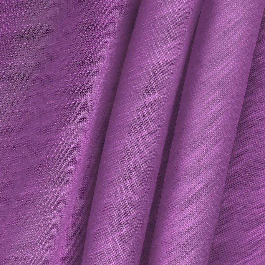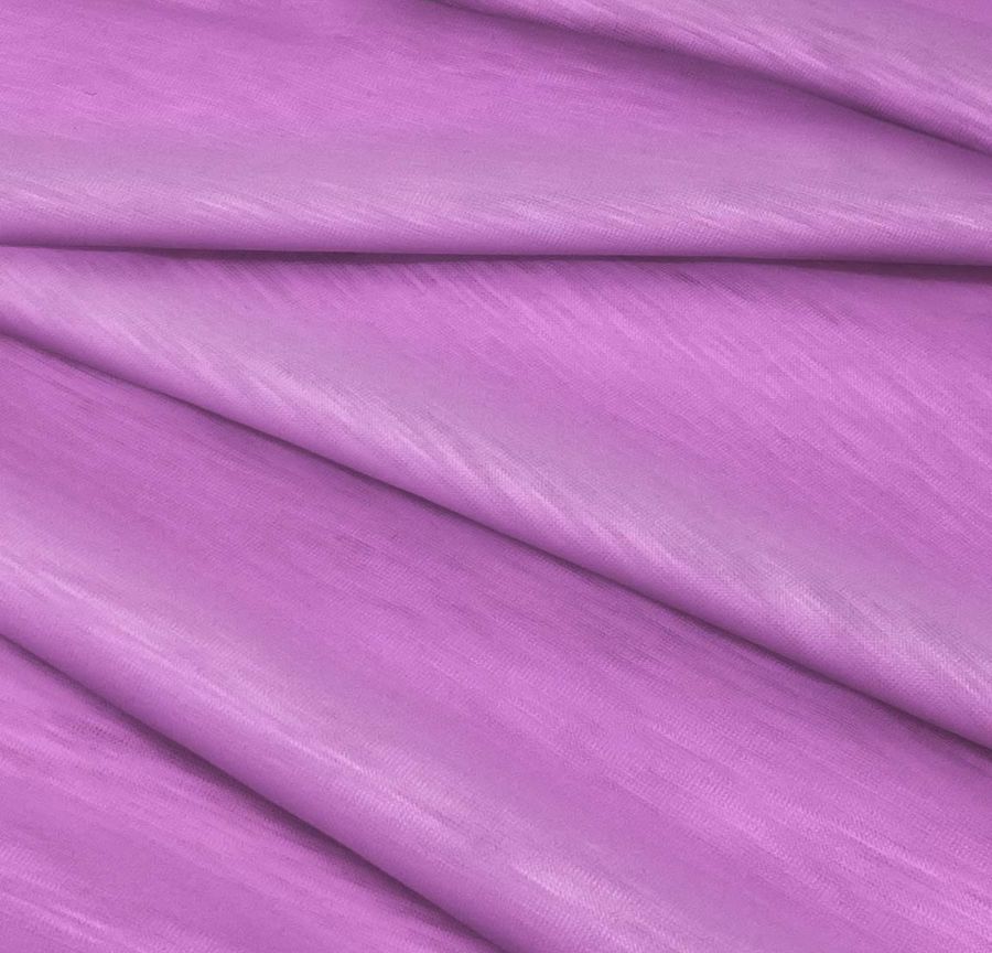 La tela base es el Punto Camiseta Jaspeado - Dubái, una tela de punto compuesta por 100% poliéster con un gramaje de 135 gr/m2 y un ancho de 160 cm. El color liso impreso es rosa-malva profundo, cuyas tintas CMYK son 31 62 0 0, lo que le da una tonalidad elegante y sofisticada. El color secundario se describe como una mezcla de rosa y morado intenso que simboliza la feminidad y la espiritualidad. Combina perfectamente con tonalidades como el gris, el negro, el blanco y el azul marino, creando contrastes y combinaciones interesantes.