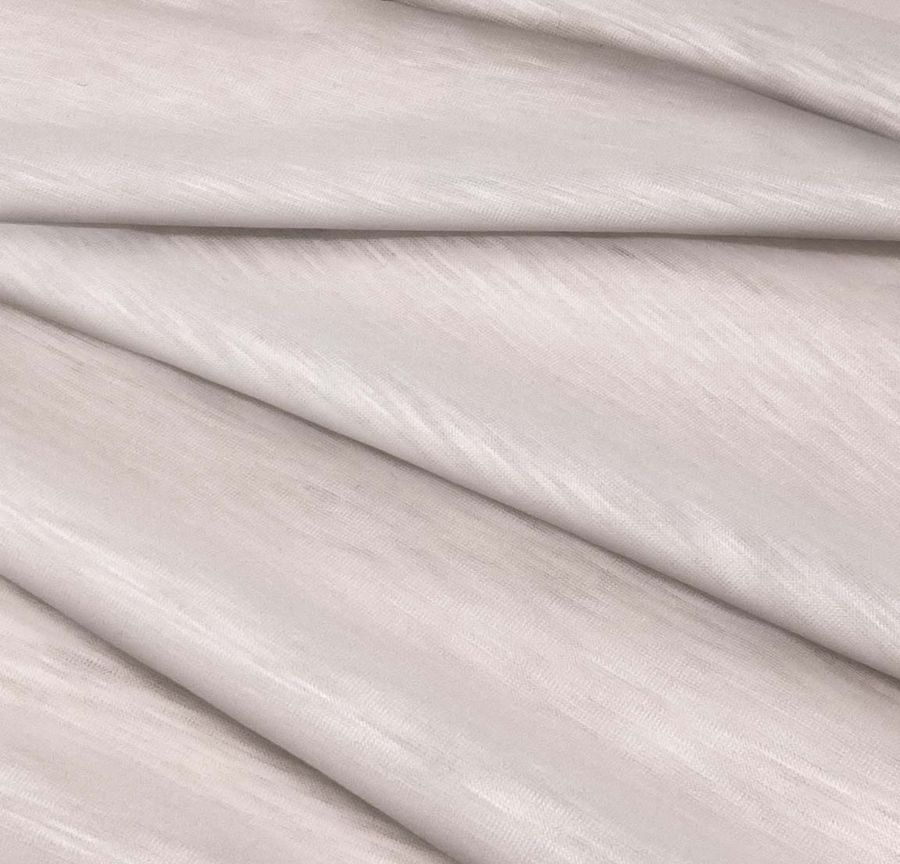 La tela jaspeada presenta una textura lisa, visual translúcida y visual jaspeada, con un tacto elástico que permite un ajuste cómodo a cualquier prenda. El color impreso añade una textura visual añadida de color rosa pastel, lo que lo hace apto para ser utilizado en prendas de mujer o hombres que busquen mostrar romanticismo, ternura y frescura en sus diseños. Este color es complementario con tonos grises, azules y verdes.