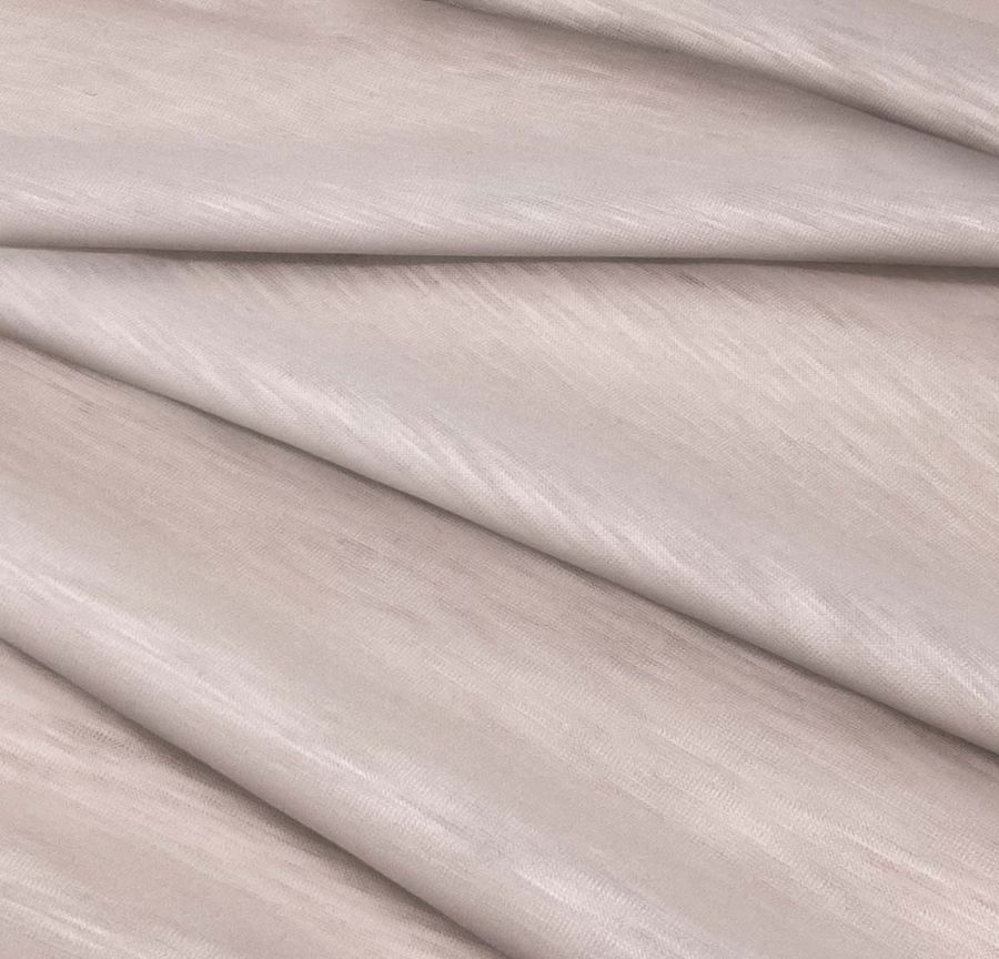 La tela base de la Punto Camiseta Jaspeado - Dubái es una tela de punto compuesta por 100% poliéster, con un gramaje de 135 gr/m2 y un ancho de 160 cm. Su color liso impreso es rosa-oro rosa con un CMYK de 10 26 20 1. Este color simboliza el romanticismo y la elegancia, y técnicamente se compone de tonalidades rosa y doradas. Combina armoniosamente con tonalidades como beige, blanco, gris y marrón claro. Este tejido está impreso a una sola cara por impresión digital textil, lo cual indica que su color liso está impreso sobre la superficie de la tela base, no es un tejido tintado sino impreso por una cara.